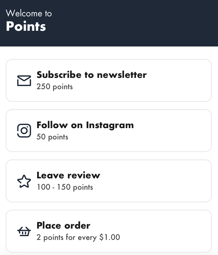 Be rewarded with points, to be redeemed for free products when you shop online etc.