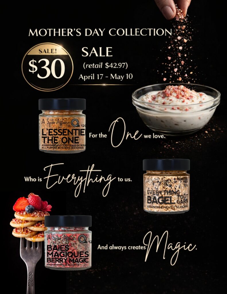 If you’re new around here, A Spice Affair: Launched at the end of 2016, in Canada, by Ayman Saifi, a 4th generation spice merchant. A Spice Affair was born out of a desire to create a line of seasonings that could marry the beauty of natural unadulterated ingredients with a passion for big bold flavours, without chemicals or compromise.