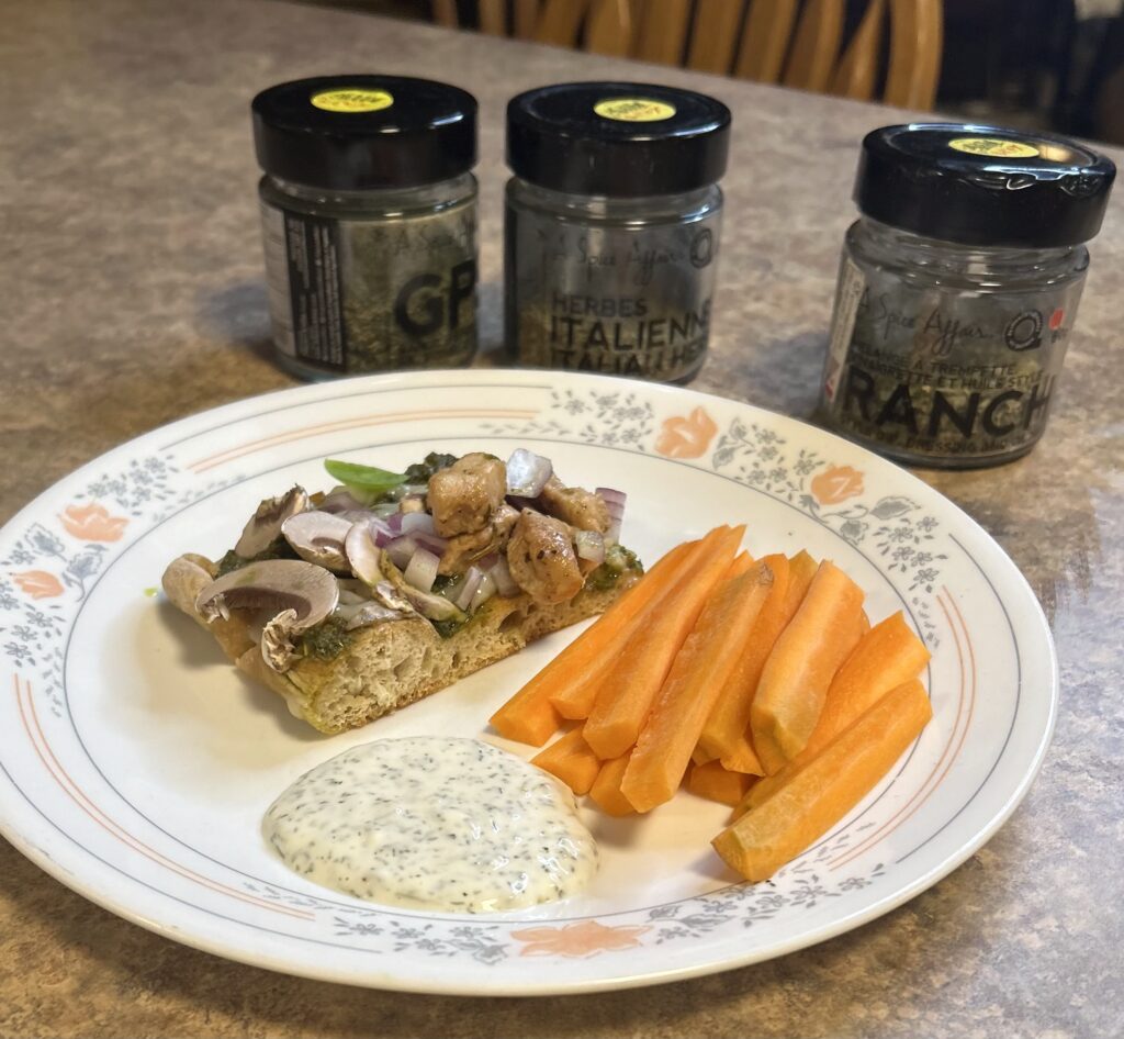 Served with carrot sticks and A Spice Affair Ranch Dressing